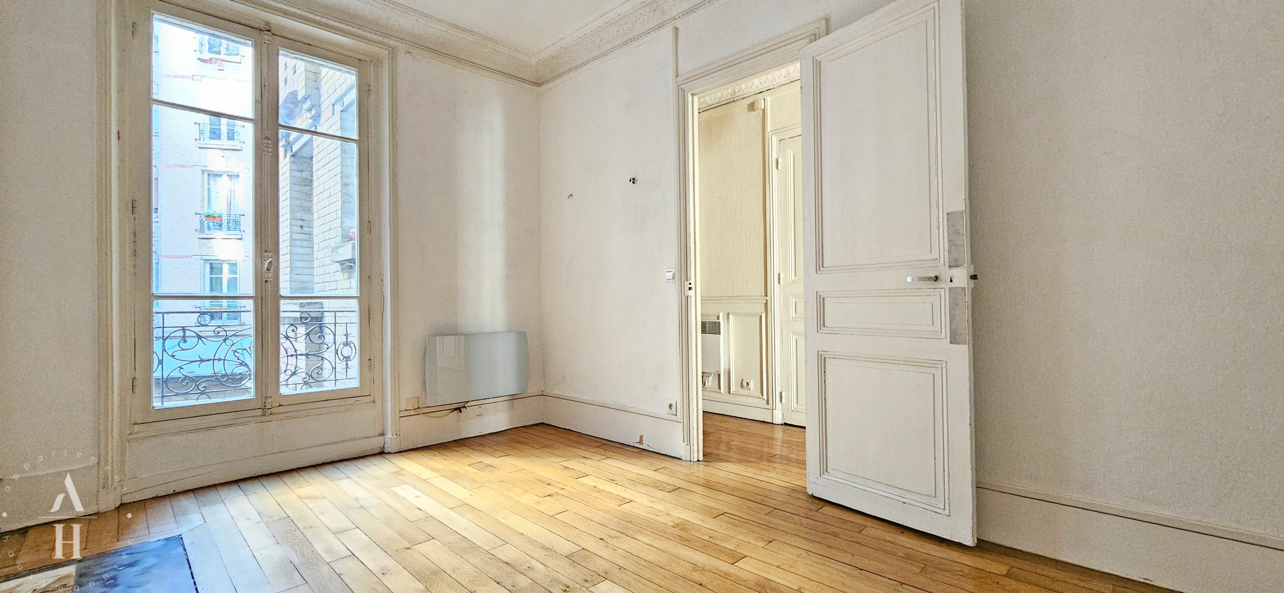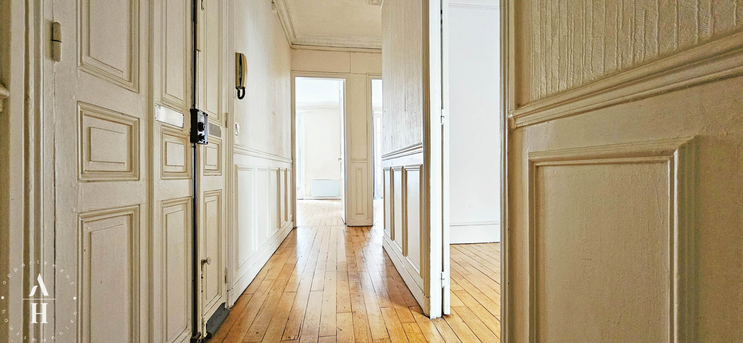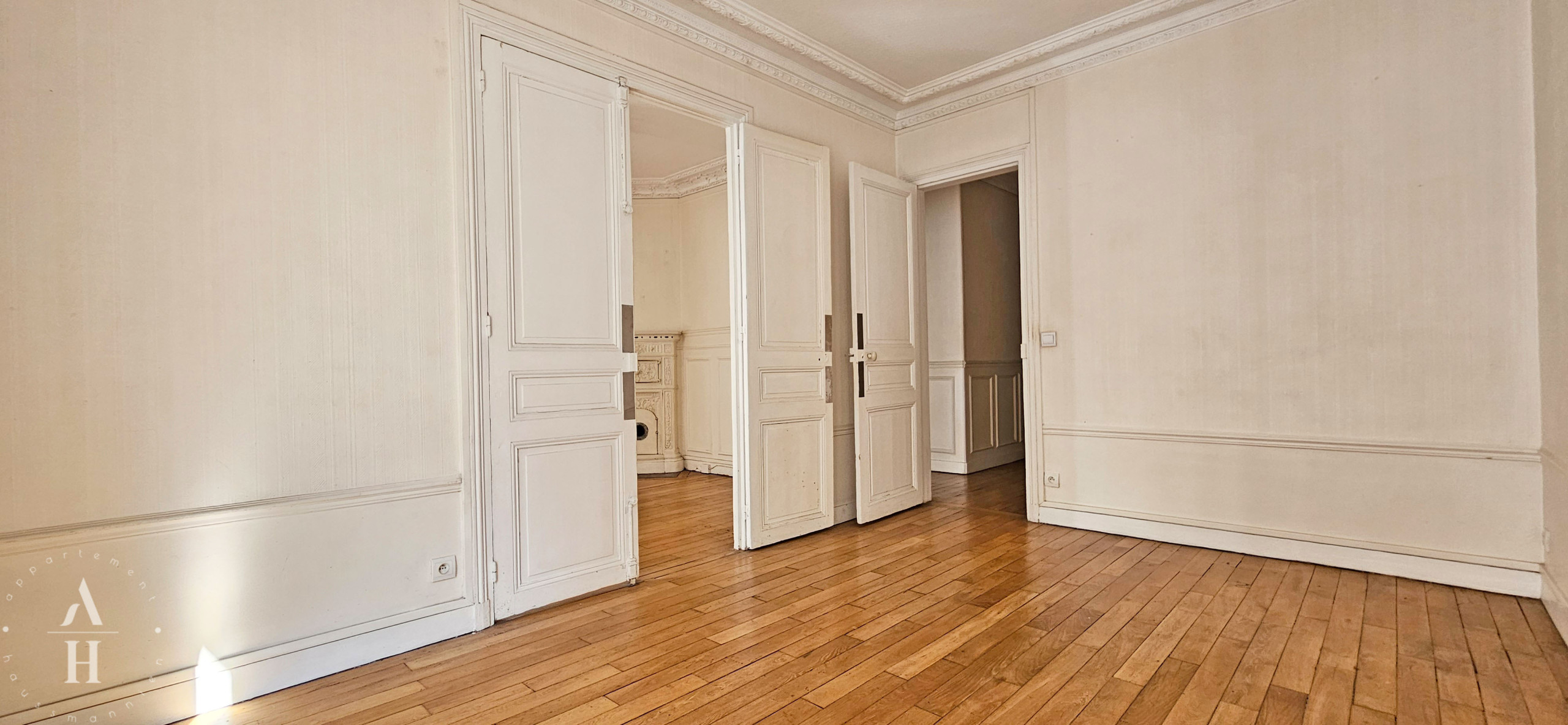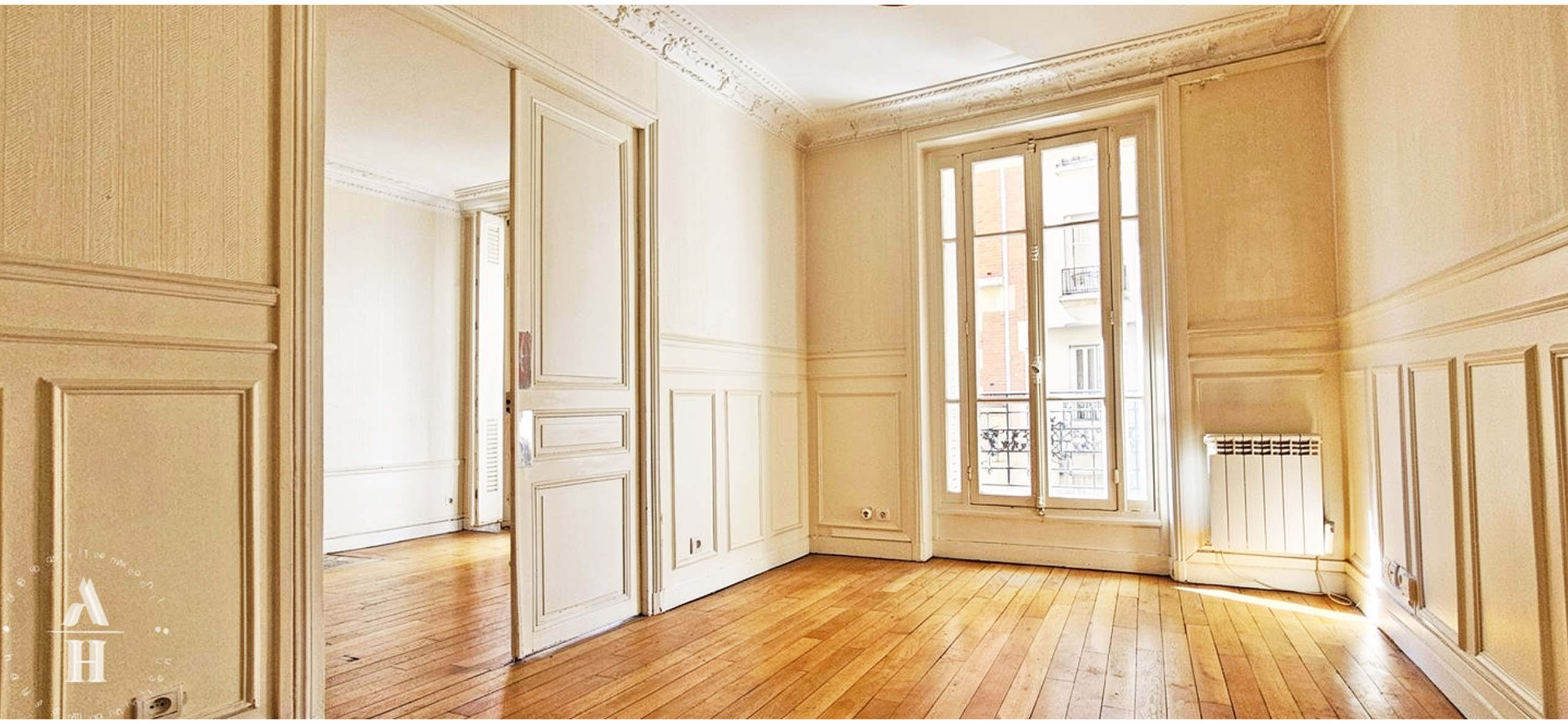 Son plan traversant (rue et cour) orienté sud, offre trois belles pièces principales pouvant être utilisées selon les besoins en « double salon + une chambre » ou « salon simple + deux chambres ». Resté dans son état d’origine, ce bien nécessite une rénovation (sans contrainte technique majeure) qui permettra d’optimiser son plan tout en mettant en valeur ses attributs d’origine, parquet, cheminée, moulures et belle hauteur sous plafond. Le chauffage et l’eau chaude sont individuels et électriques. Les fenêtres sont en simple vitrage d’origine. Une cave est vendue avec cet appartement et une concierge vit sur place.